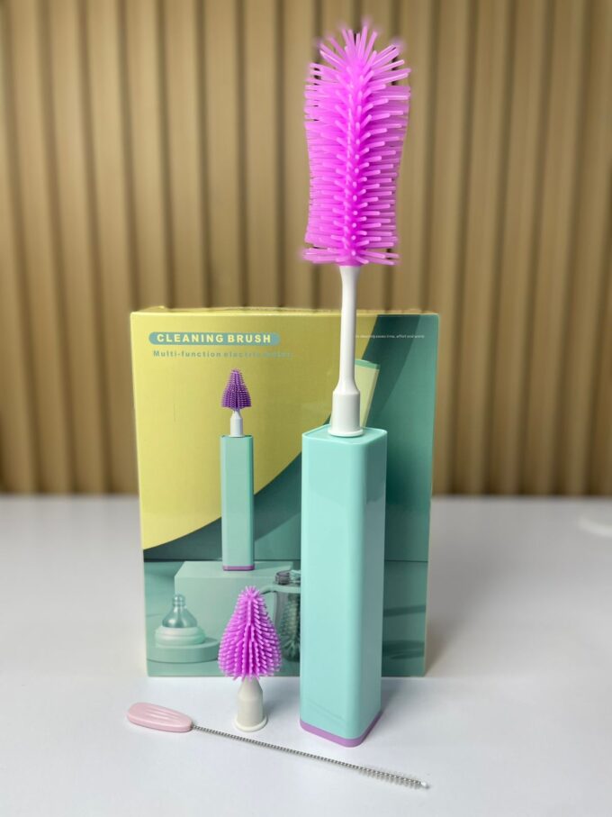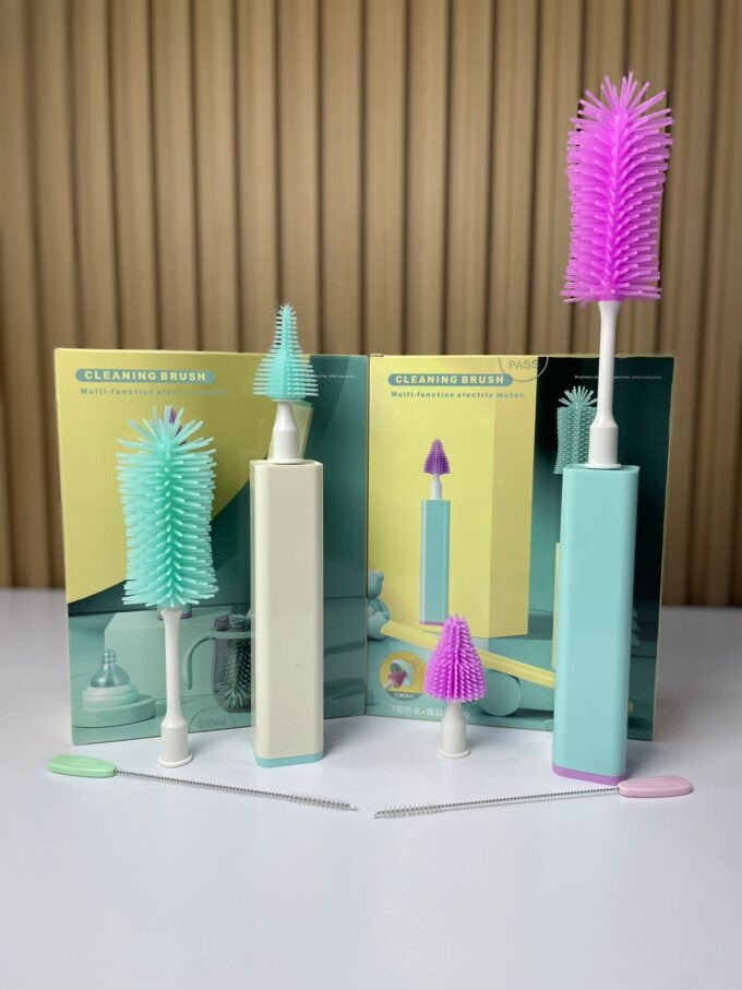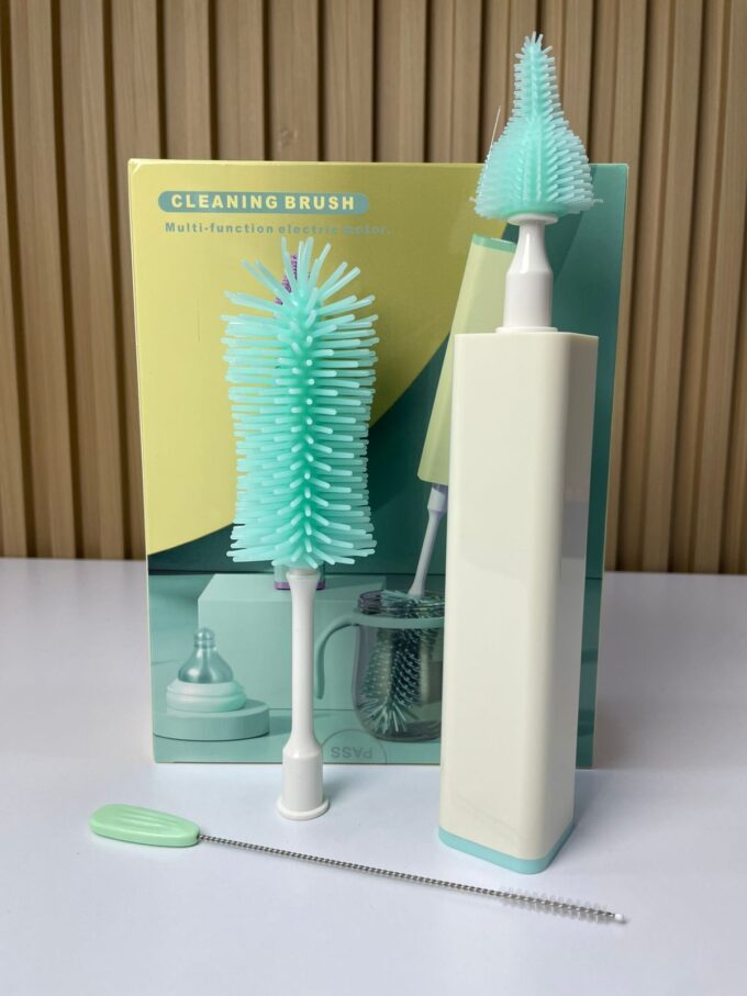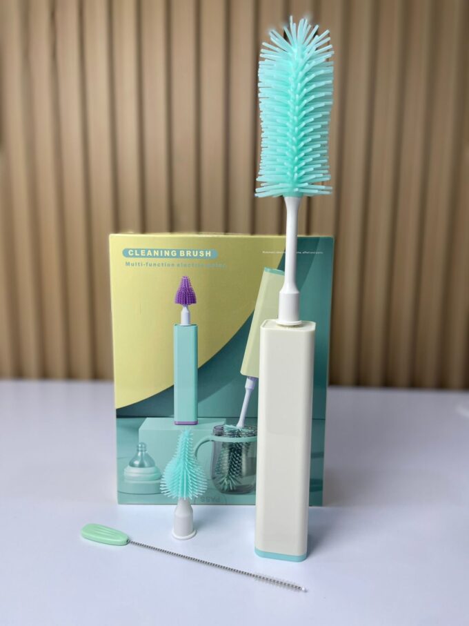 El cepillo eléctrico multifuncional para teteros es un dispositivo diseñado para facilitar la limpieza profunda de biberones, teteros y accesorios infantiles. Equipado con motor eléctrico y cabezales intercambiables de silicona, garantiza una limpieza más rápida, eficiente e higiénica, eliminando residuos difíciles de alcanzar en recipientes de boca estrecha o con formas internas complejas.