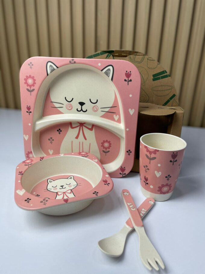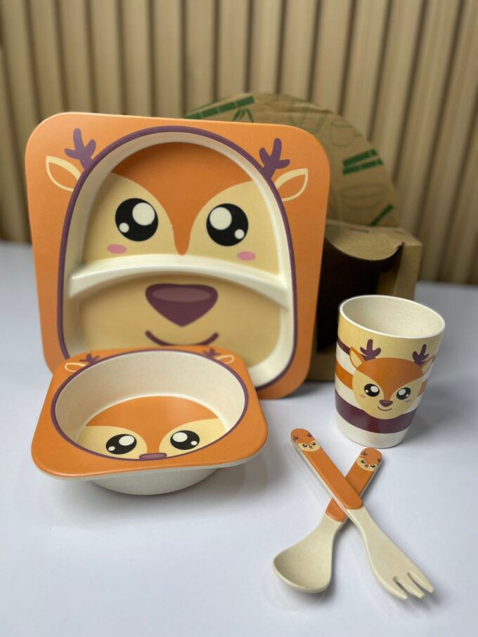 La vajilla infantil de bambú es un set ecológico y seguro diseñado especialmente para bebés y niños pequeños. Fabricada con fibras de bambú biodegradables, combina resistencia, ligereza y un diseño atractivo con ilustraciones de animales que hacen más divertida la hora de la comida. El set incluye plato compartimentado, bowl, vaso, cuchara y tenedor, ofreciendo una solución completa y práctica para la alimentación infantil.